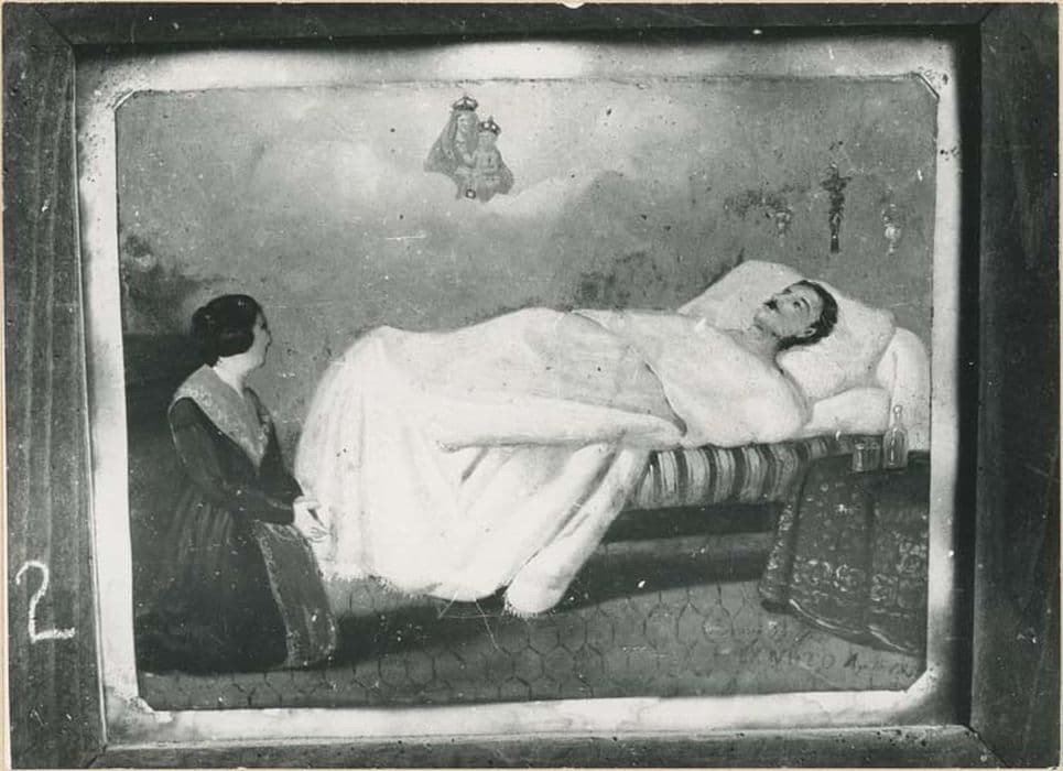 tableau ex-voto : Femme agenouillée auprès d'un malade
