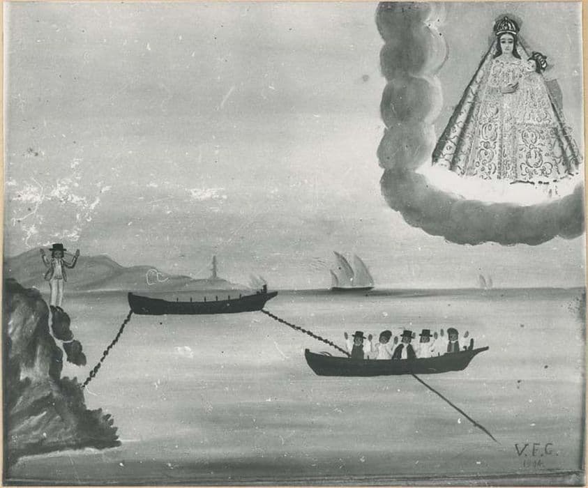 POP | Plateforme ouverte du patrimoinetableau ex-voto : Homme glissant sur les rochers au bord de mer