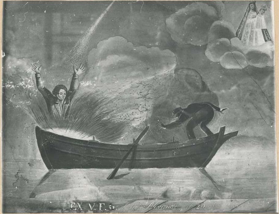 tableau ex-voto : Barque assaillie par un incendie, coup de foudre