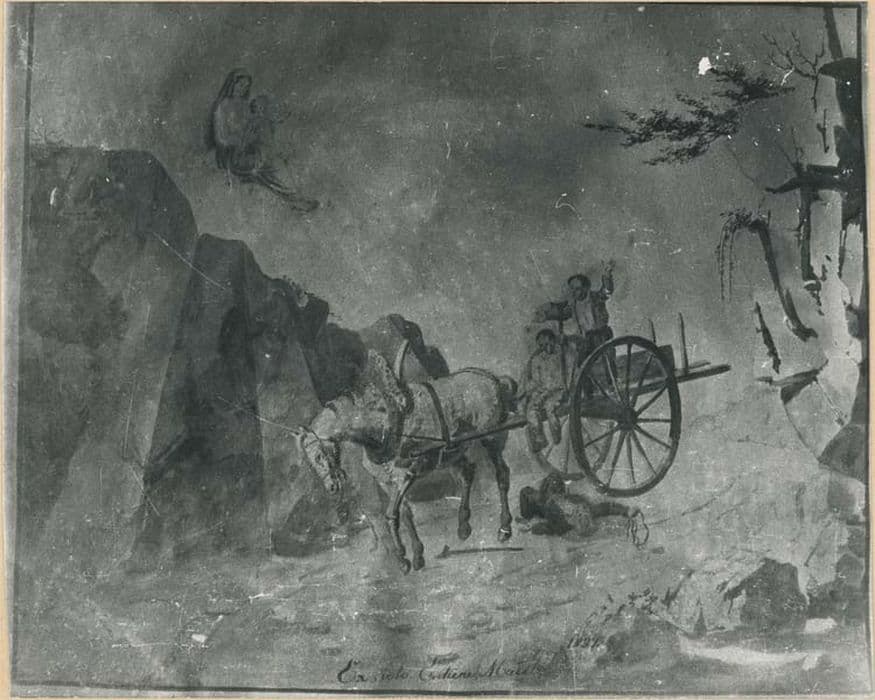 tableau ex-voto : Enfant sous les roues d'une charrette