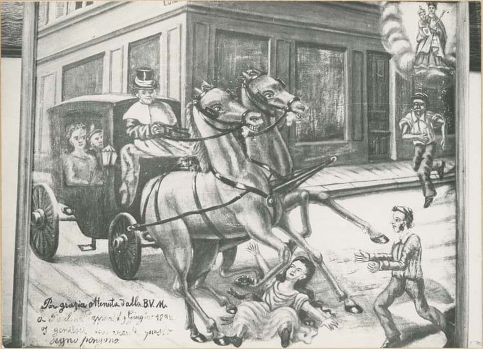 POP | Plateforme ouverte du patrimoinetableau ex-voto : Fillette tombée sous les pattes d'un attelage