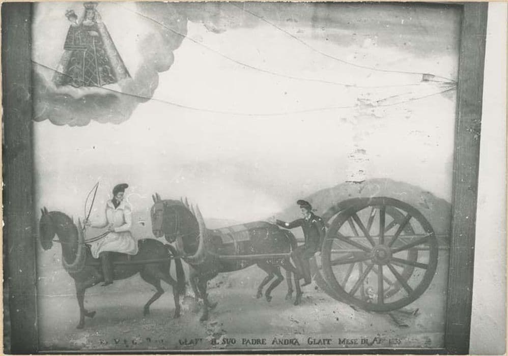 tableau ex-voto : Enfant sous les roues d'une charrette
