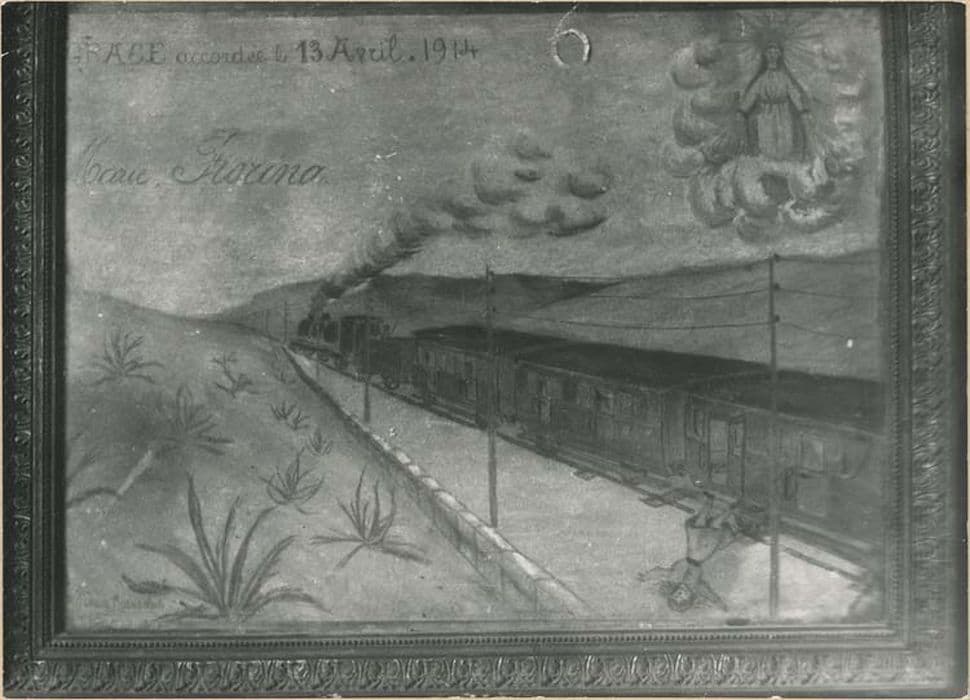 POP | Plateforme ouverte du patrimoinetableau ex-voto : Enfant tombant d'un train en marche