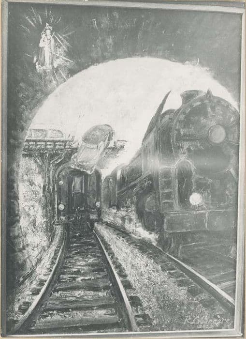 tableau ex-voto : Voiture tombant sur la voie ferrée