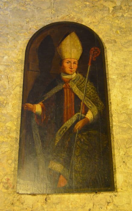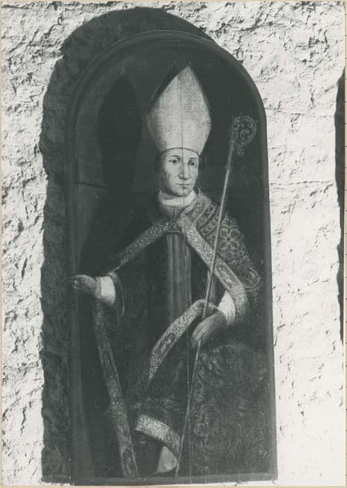 Panneau peint. Panneau simulant une niche abritant l'effigie.