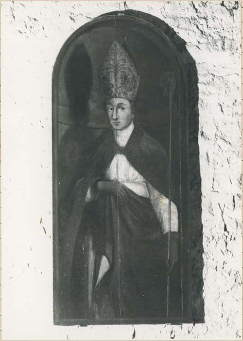 Panneau peint. Panneau simulant une niche abritant l'effigie.