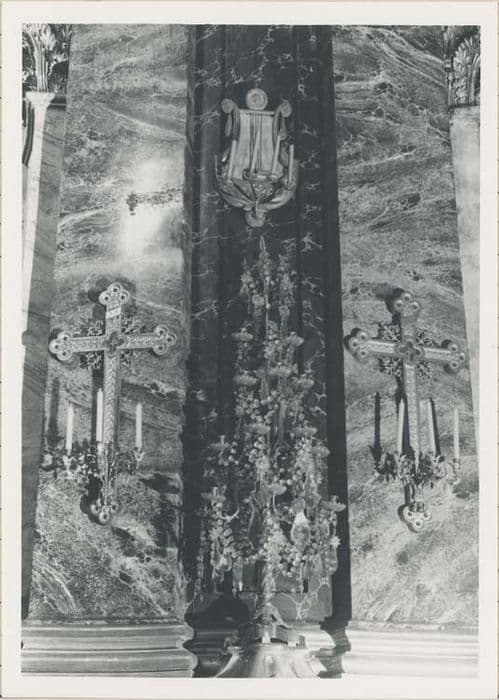 Luminaires de la chapelle : un grand lustre, un lustre de choeur, quatre lustres latéraux, six girandoles.