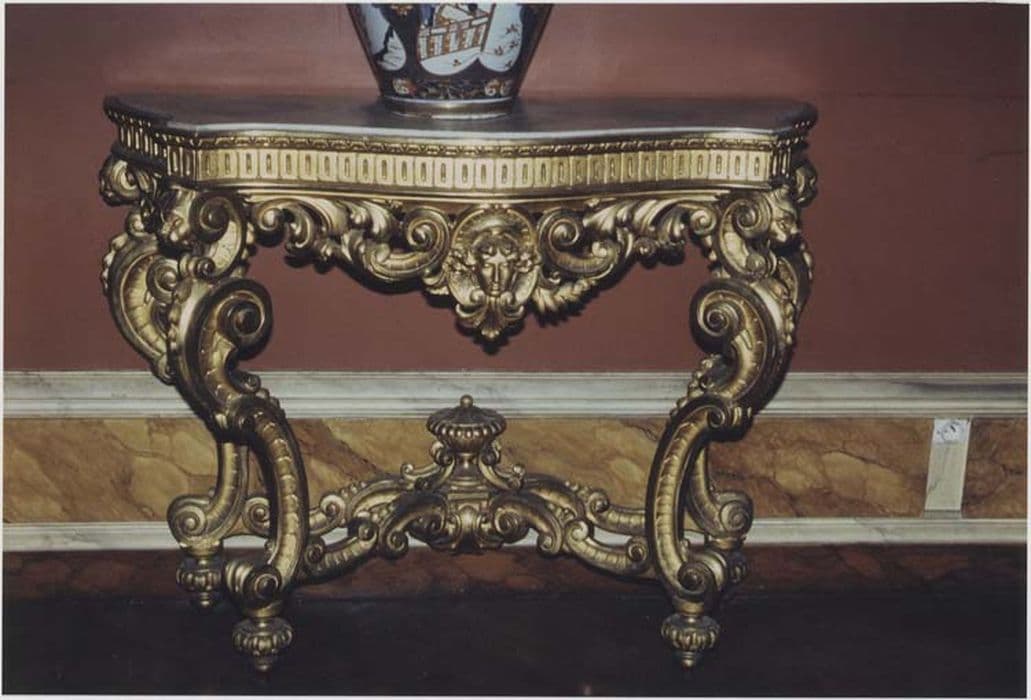Table-console d'appui enbois sculpté et doré, à plateau de marbre.