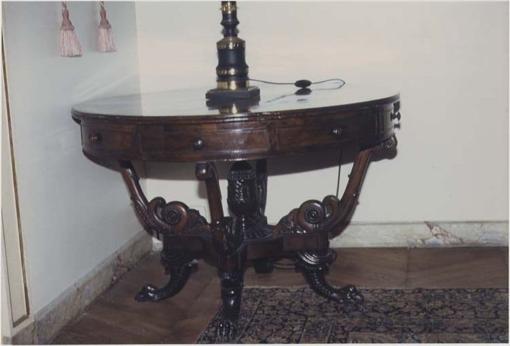 Table circulaire en acajou à piétement sculpté zoomorphe zampre du capre.