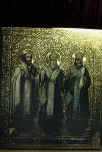 icône : les trois sains hiérarques : Basile le Grand, Grégoire le Théologien, Jean Chrysostome