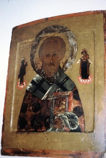 POP | Plateforme ouverte du patrimoineicône : saint Nicolas le Thaumaturge avec ifuration du Christ et de la Vierge Marie, en pied