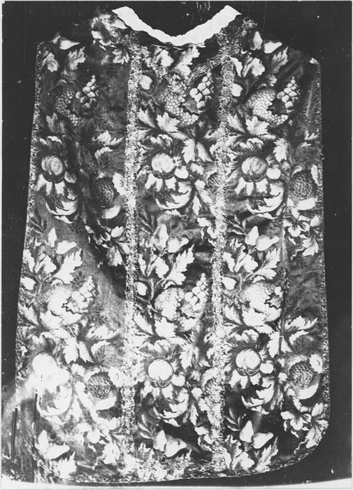 Dimensions de la chape : h = 130 ; la = 240. Dimensions de la chasuble : h = 110 ; la = 70