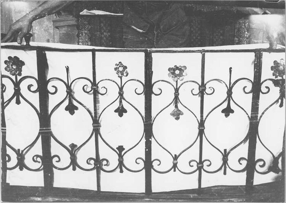 Grille à décor de volutes et de fleurs.