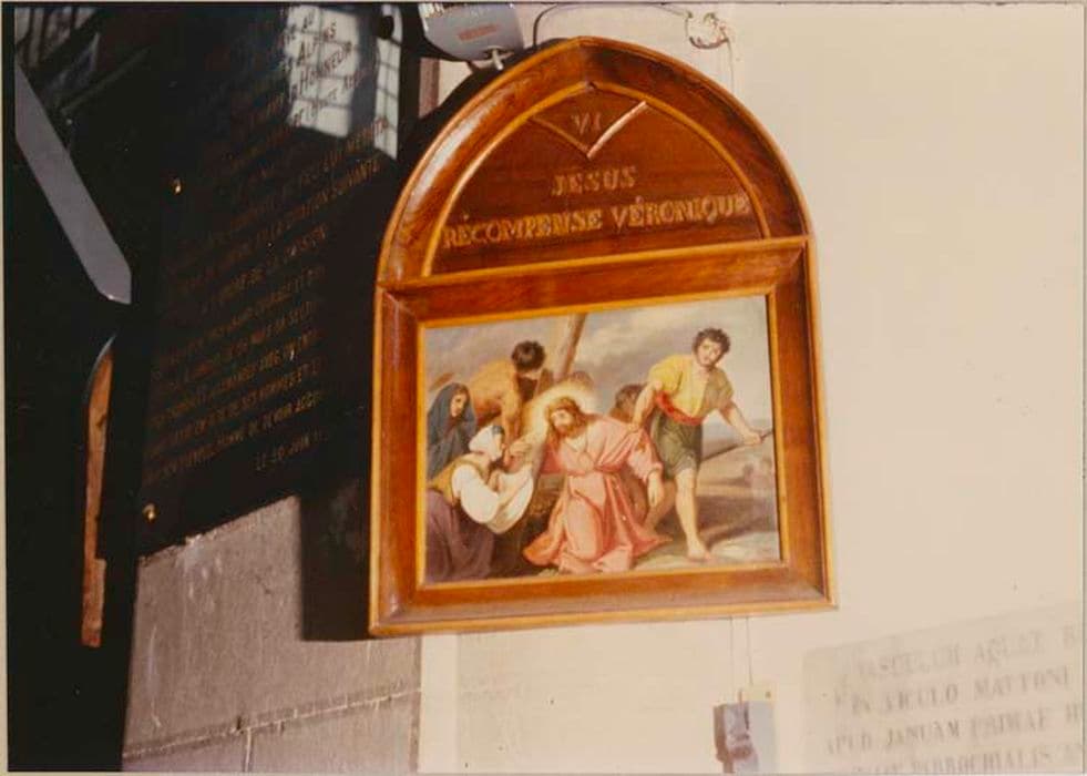 Les quatorze stations sont des tableaux rectangulaires verticaux placés dans des cadres en bois avec fronton avec arc en ogive sur lequel sont inscrits le numéro et le titre de la station.