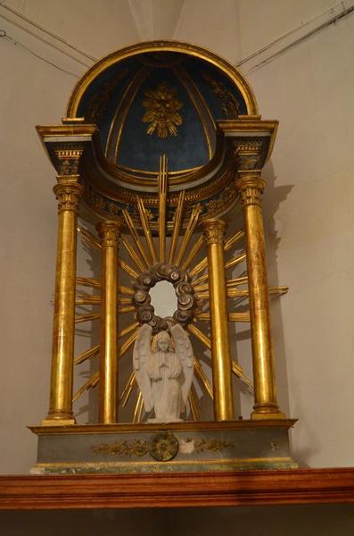 bois : taillé, peint, doré ; plâtre : peint, doré