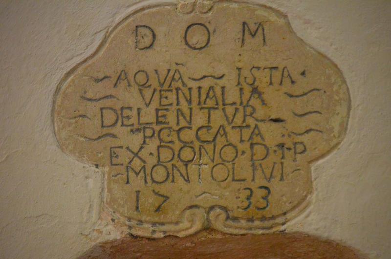 D O M / AQUA. ISTA / VENALIA / DELENTUR / PECCATA / EX DONO D. I. P. / MONTOLIVI / 1733