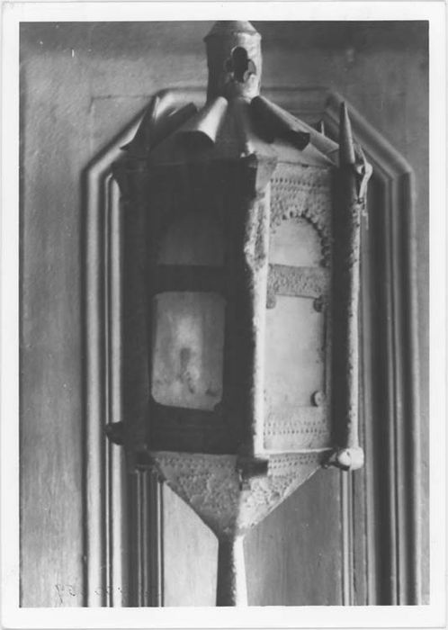 Lanternes en fer blanc battu. De section hexagonale, à prisme régulier, couronné par une flèche conique. Les arêtes sont flanquées de tourelles à flèche conique. Ces lanternes, utilisées pour les processions funéraires, sont dépourvues de polychromie.