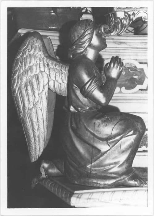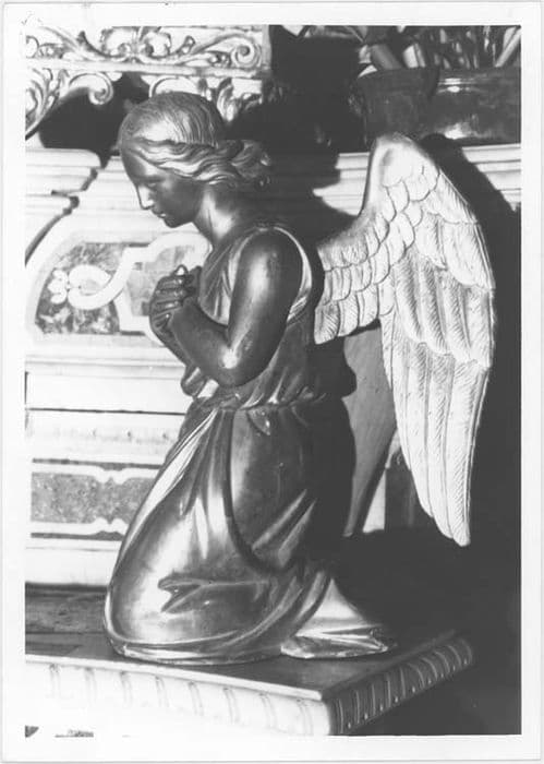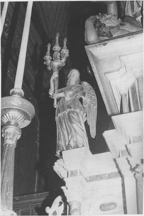 Les torchères sont des statues d'anges portant un chandelier à trois branches. Les anges adorateurs sont agenouillés.