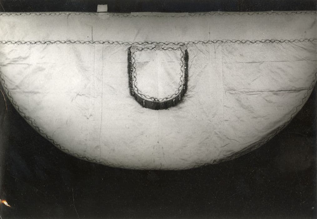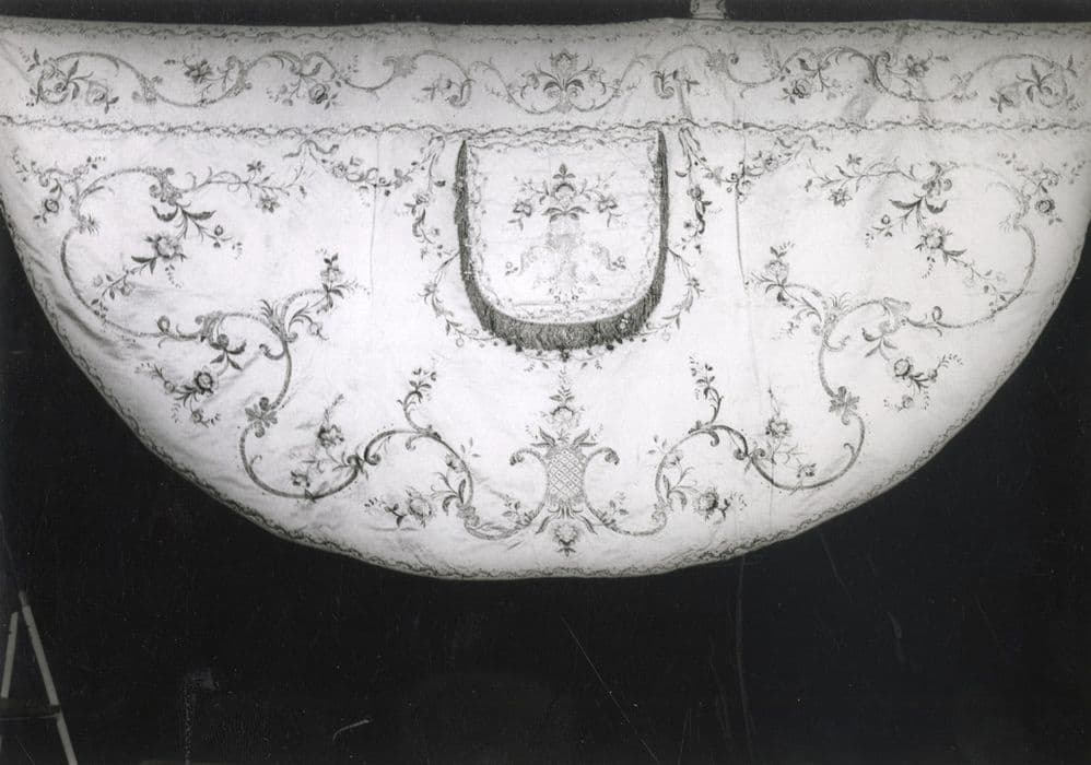 service pontifical dit de l'Evêque Valperga composé de 15 pièces : 2 chapes, 1 chasuble, 4 dalmatiques, 2 étoles, 3 manipules, 1 bourse de corporal, 2 chapes sans décor pour chapiers (chantres)