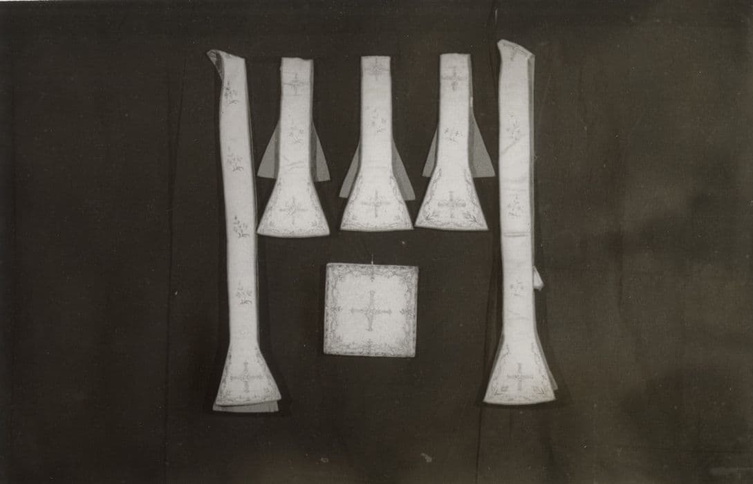 chasuble ; chape ; dalmatique ; étole de clerc ; manipule ; bourse de corporal
