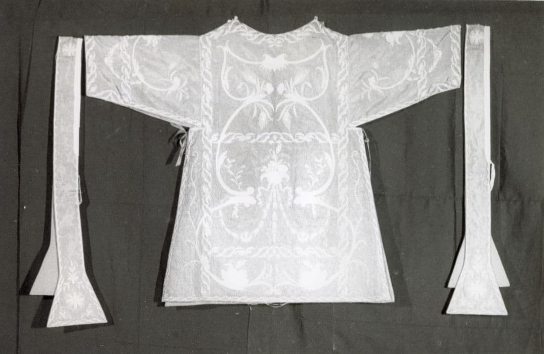 POP | Plateforme ouverte du patrimoineservice pontifical provenant de l'église du Gésù composé de 14 pièces : 3 chapes, 1 chasuble, deux dalmatiques, 1 voile huméral, 2 étoles, 3 manipules, 1 voile et 1 bourse de corporal