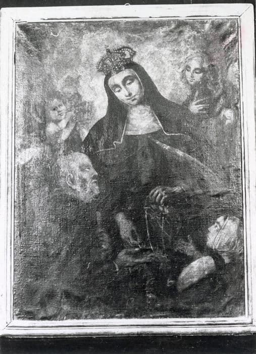 toile avec son encadrement : Sainte Elisabeth de Hongrie distribuant des aumônes