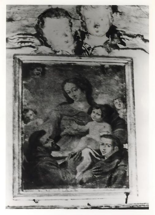 tableau et son cadre : Vierge à l'Enfant entre deux Saints franciscains