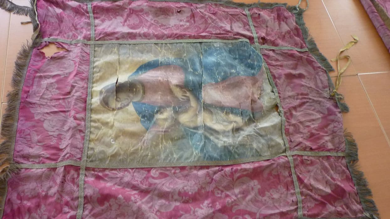 bannière de procession : Vierge à l'Enfant (avers), Saint Esprit (revers)