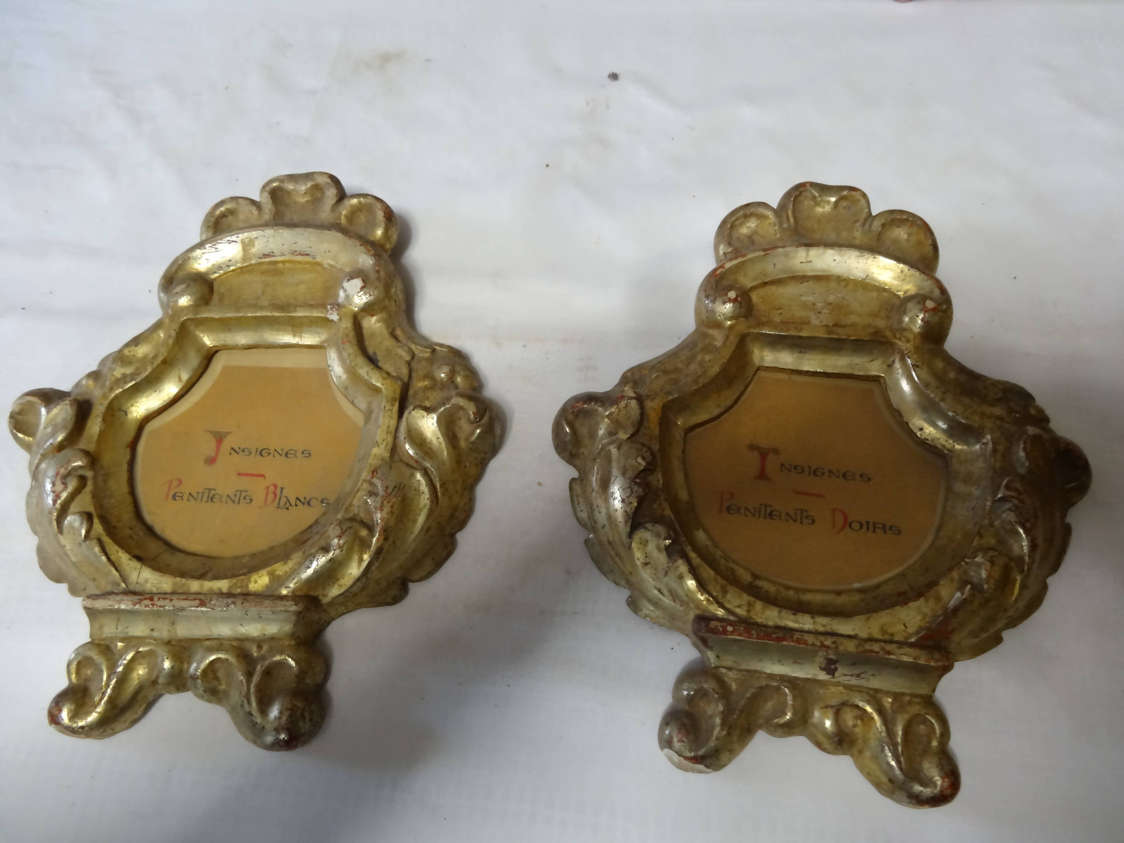 Bois en partie sculpté, argenté à la feuille puis doré à la gomme-laque, cadre sous verre.