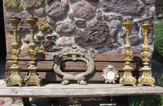 chandeliers : h = 73, la = 18 ; canons d'autel, h = 50, la = 54 ; h = 26, la = 21