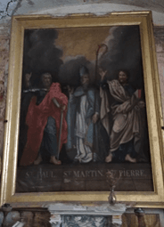 tableau et son cadre : Saint Martin entre Saint Pierre et Saint Paul