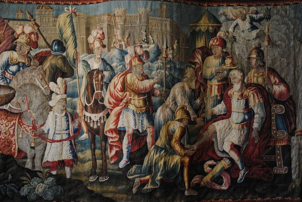 7 pièces murales : 6 épisodes de la Jérusalem délivrée, et une scène de greffage