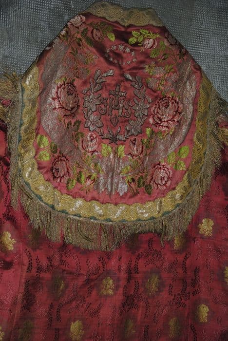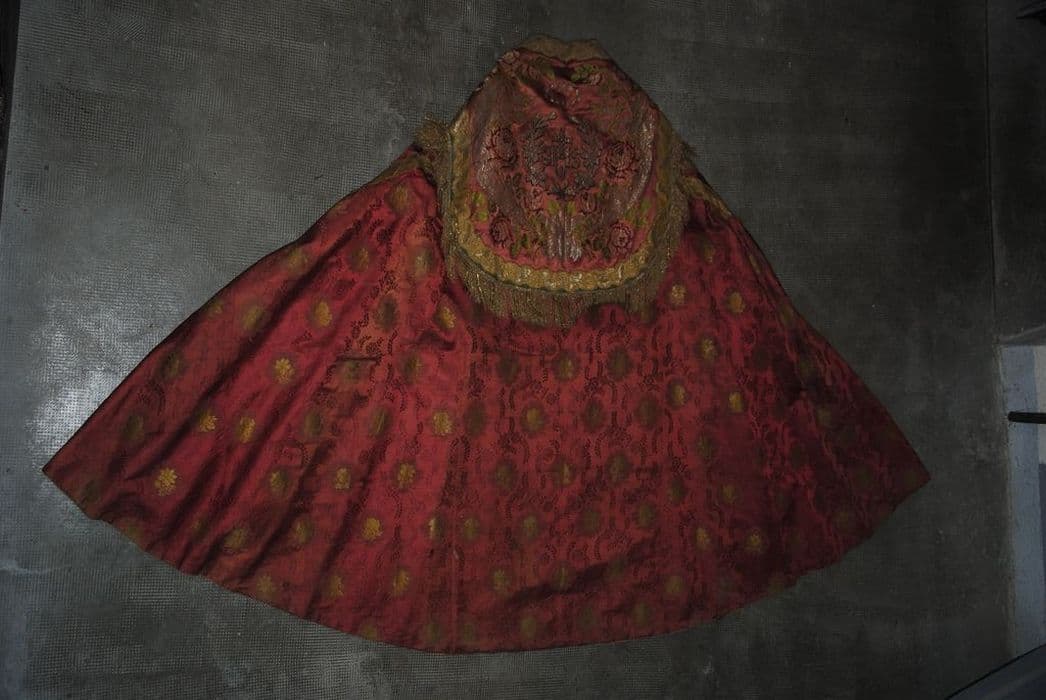 Chape brodée de couleur rouge.