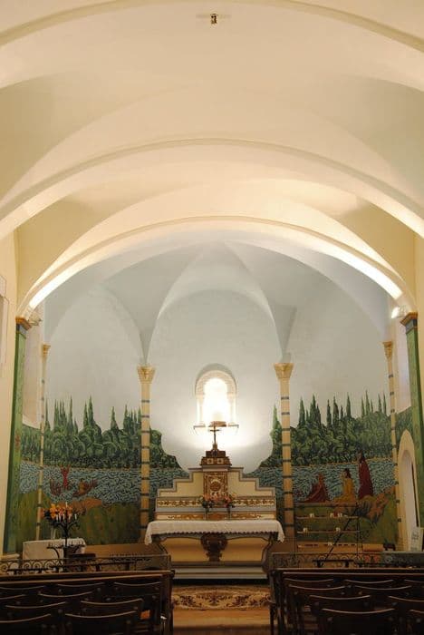 POP | Plateforme ouverte du patrimoinedécor de l'ensemble de la Chapelle dont les peintures murales, les tableaux, l'autel, la table de communion, les sièges, le chemin de croix, les appliques électriques