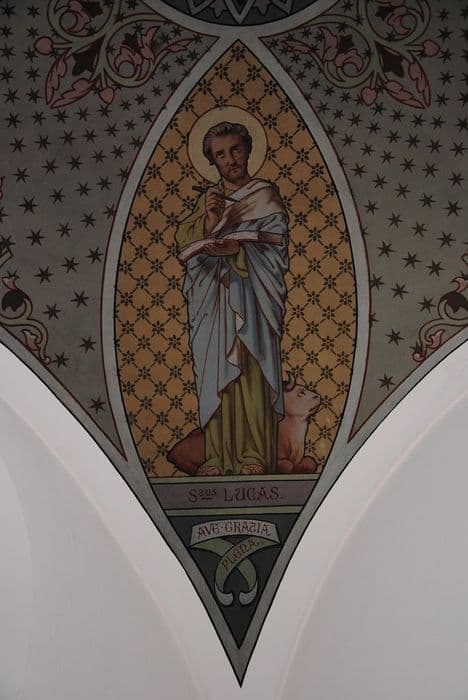 décor d'architecture ; peinture monumentale ; statue ; fonts baptismaux ; confessionnal ; orgue ; siège ; chemin de croix ; verrière ; autel ; clôture de choeur