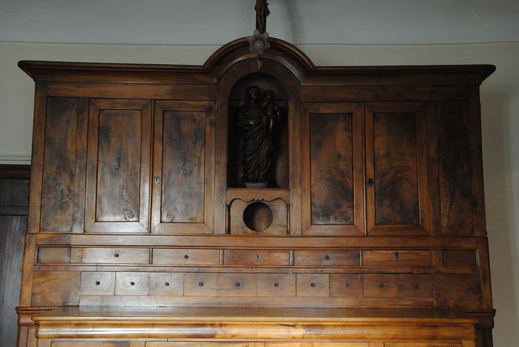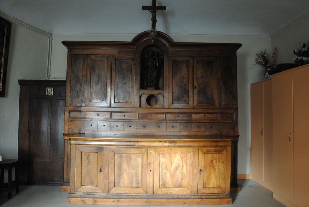 POP | Plateforme ouverte du patrimoinemeuble de sacristie : crédence avec niche renfermant une statue de la Vierge à l'Enfant, le Christ en Croix, la Vierge à l'Enfant sur le globe