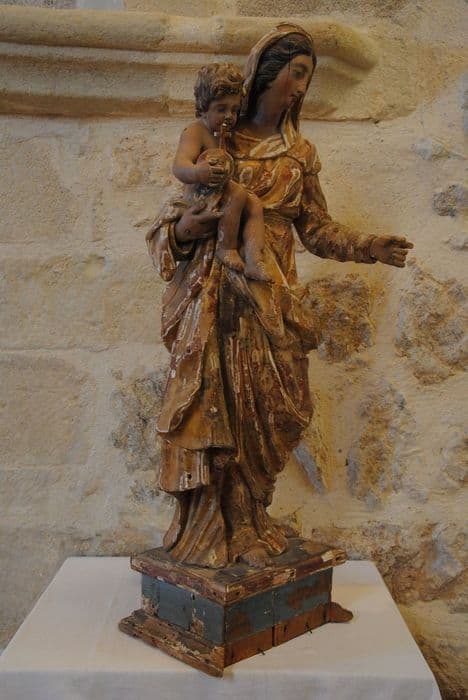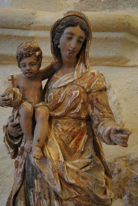 statue en bois peinte et dorée de Vierge à l'Enfant