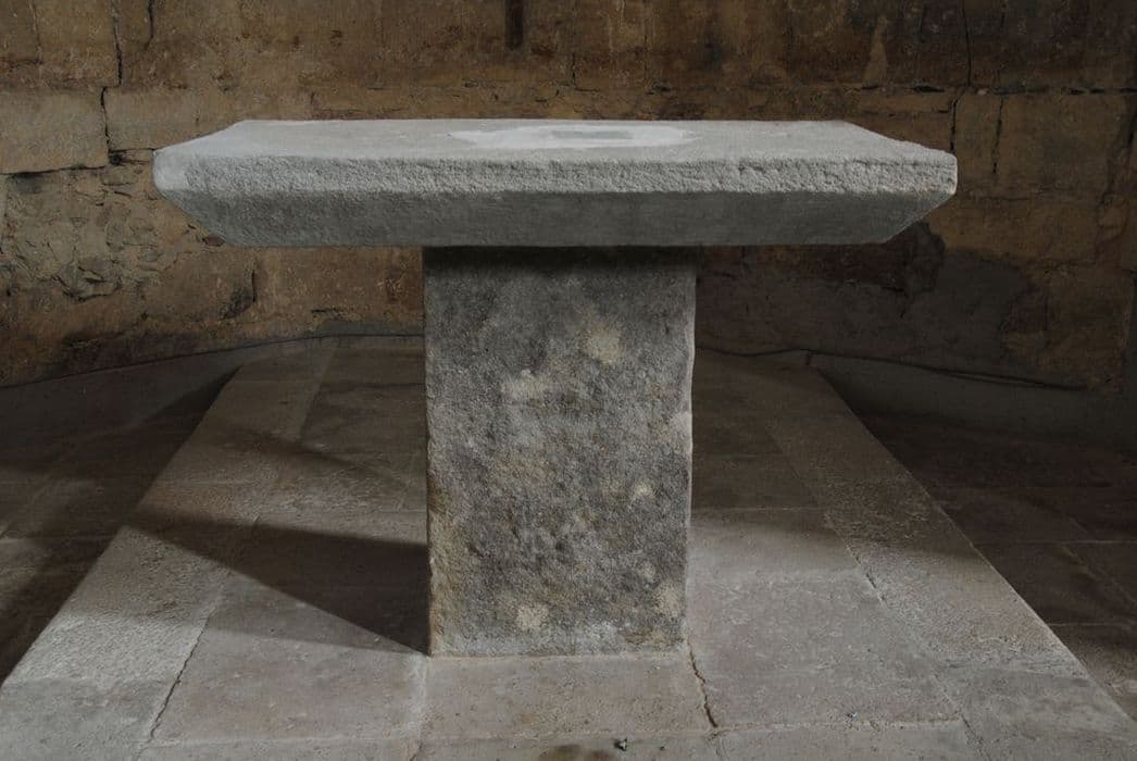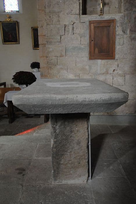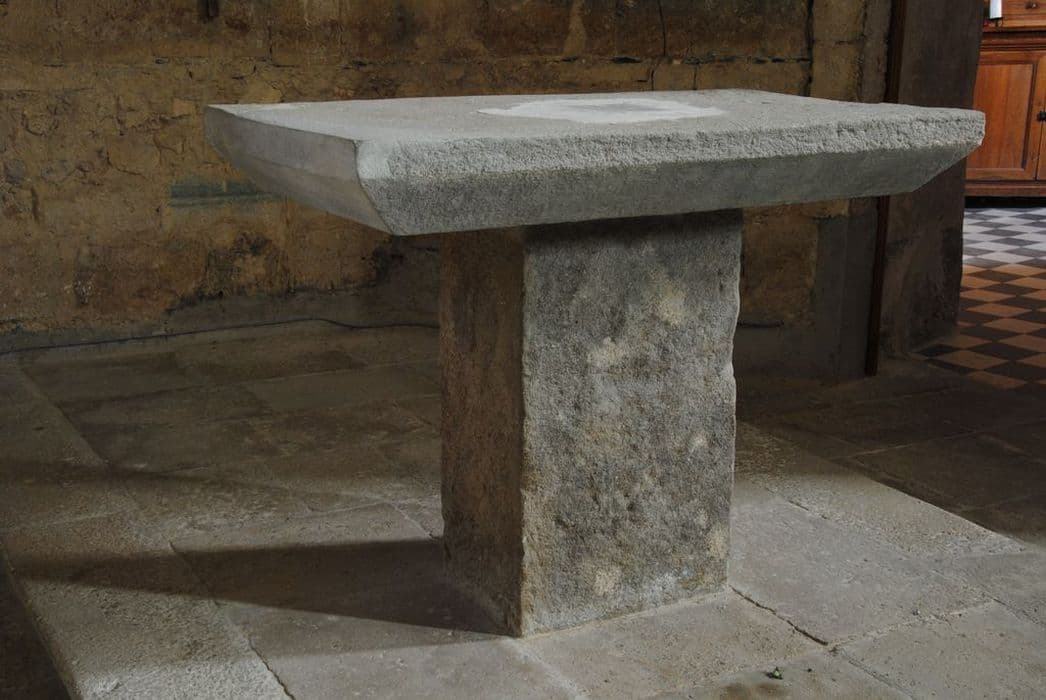 Maître-autel constitué d'une table chanfreinée portée par un socle de section carrée