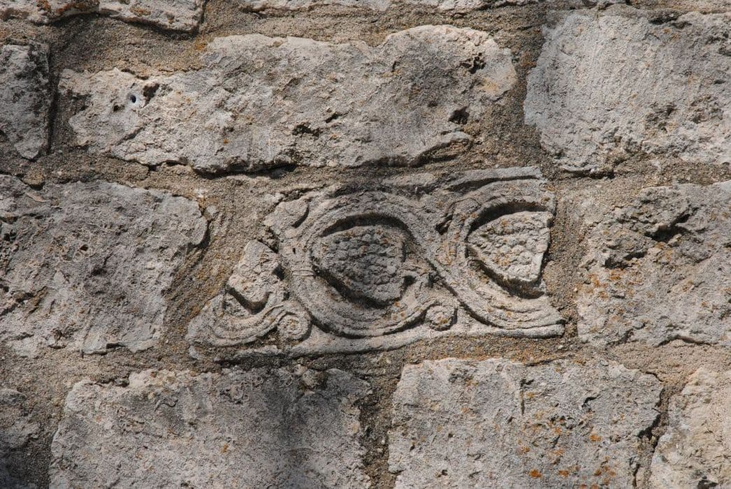 Insérés parmi les pierres de taille des murs extérieurs de la chapelle.