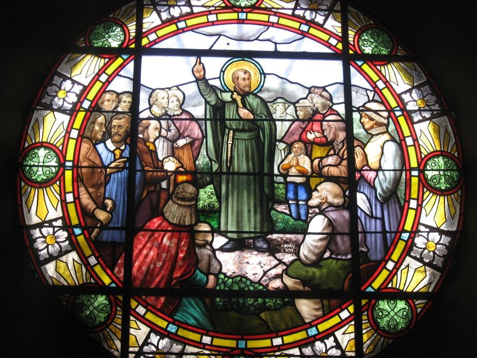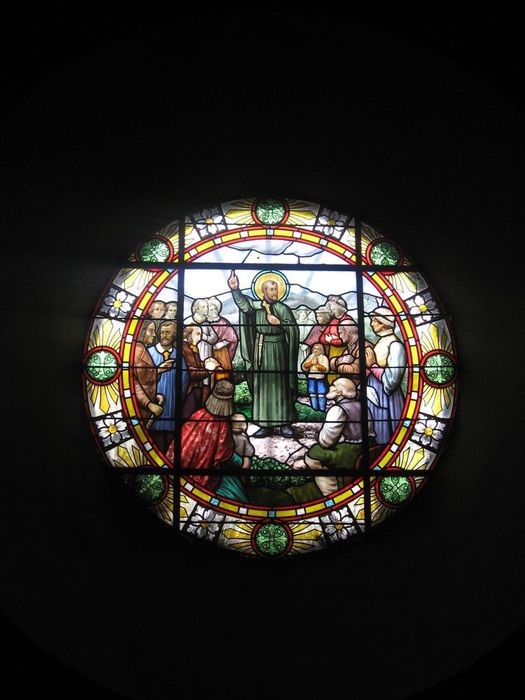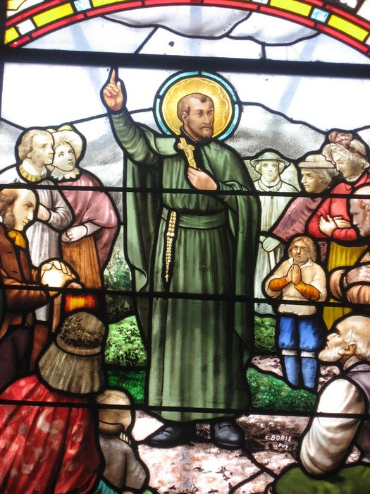POP | Plateforme ouverte du patrimoineverrière : vitrail représentant Saint Jean François Régis évangélisant au Béage