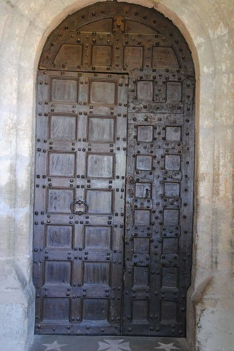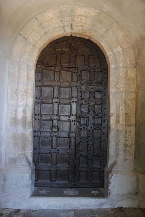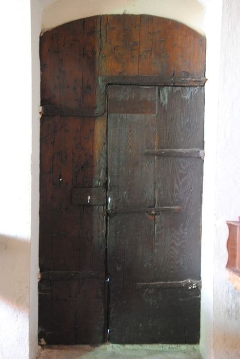 Porte en bois d’accès à la sacristie par la façade ouest.