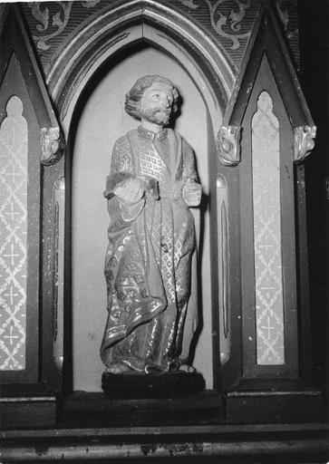 Ces six statuettes proviennent d'une ancienne châsse ou d'un ancien retable et ont été réemployées dans l'ornementation de l'autel aménagé au 19e siècle avec le tombeau de marbre du 18e siècle.