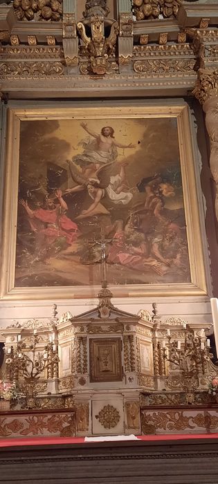 POP | Plateforme ouverte du patrimoineautel, gradins d'autel, retable, 3 tableaux : la Résurrection, la Mise au tombeau, le Baptême du Christ, tabernacle (maître-autel)