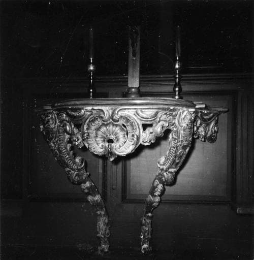 bois : doré ; marbre (gris)