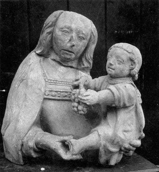 statue : Vierge à l'Enfant tenant une grappe de raisins