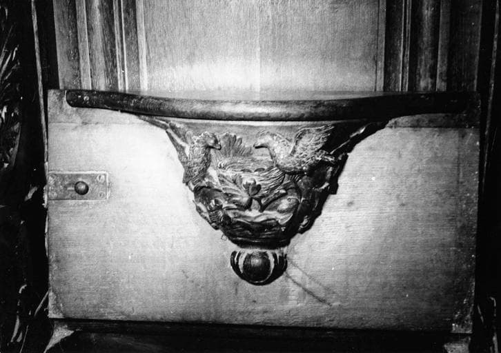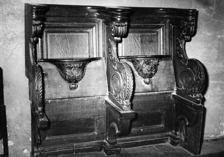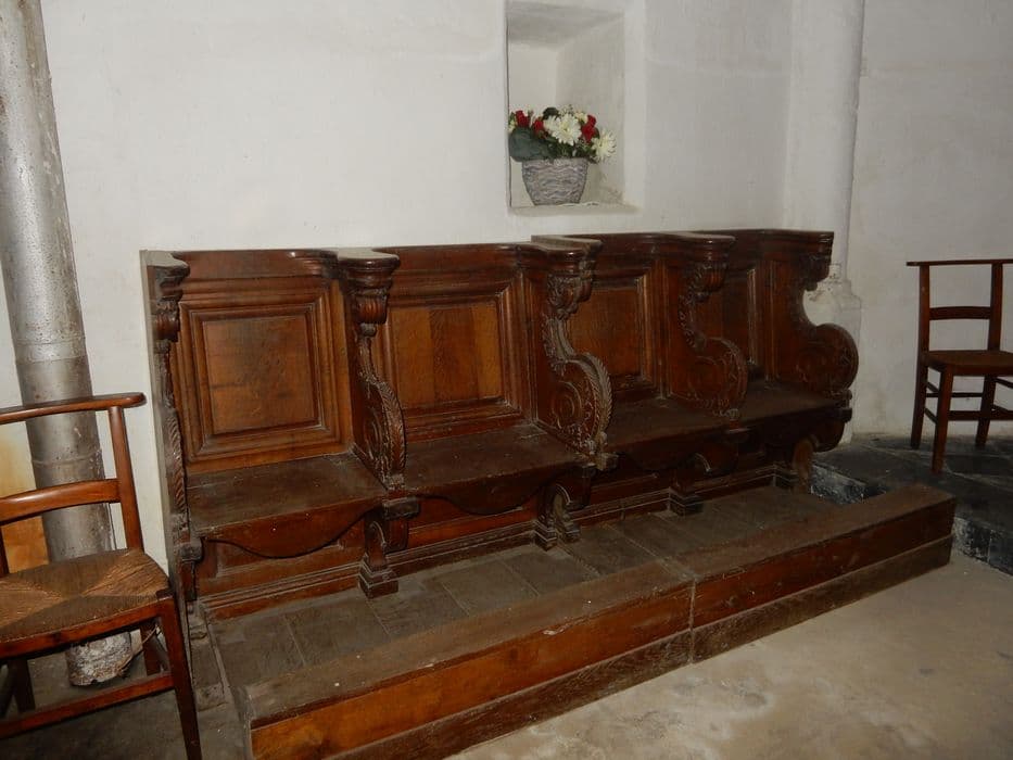 Deux bancs de stalles soit quatre sièges aux miséricordes sculptées dont trois d'entre elles s'inspirent de motifs végétaux de type classique.