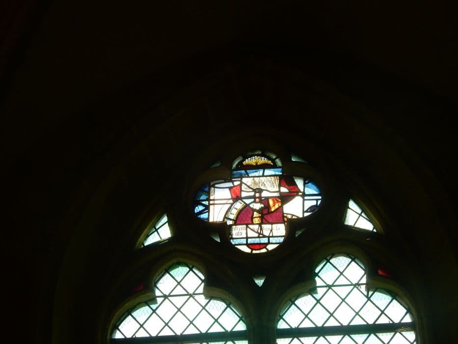 Représentation sur le premier vitrail de la vie de saint Jean-Baptiste, sur le deuxième représentation de saint Nicolas et sur le troisième représentation de sainte Barbe.
