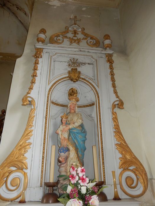 Autels secondaires en bois peint en blanc et rehauts dorés. Décor sculpté dans la masse. Autels galbés, avec retable percé d'une niche en plein cintre, frontons en volutes sur entablement rectiligne. On accède à chaque autel par deux degrés en bois brut.