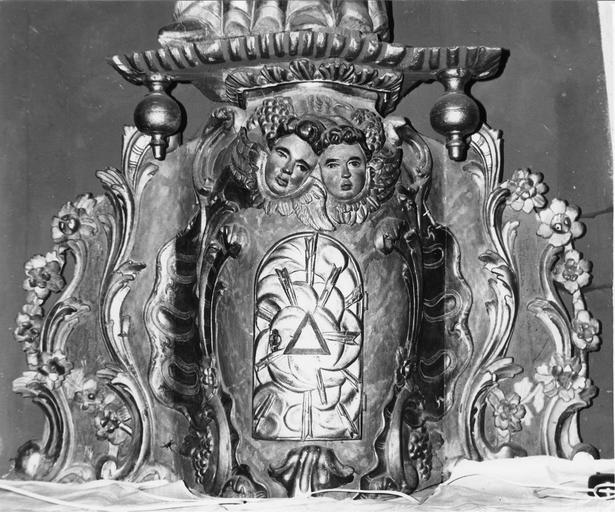 Tabernacle faisant partie de l'ensemble du retable exécuté au 18e siècle, déplacé, de même que la statue de Saint Pierre, dans la partie de l'église construite au 19e siècle.