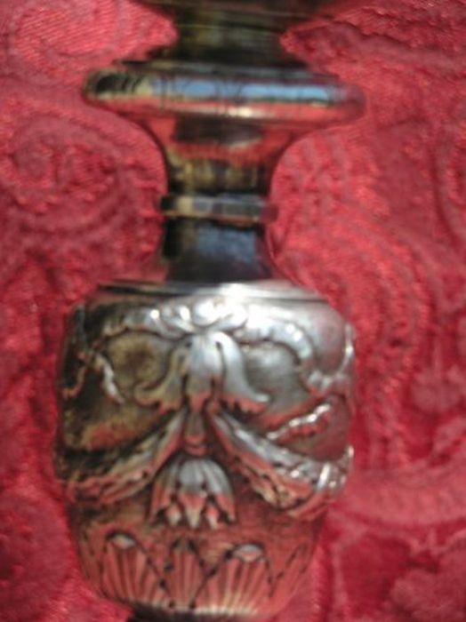 Poinçon de ville : fleur de lys TOL. Poinçon : croix de Malte (mal insculpée). Poinçon : fleur de lys M. Lettre couronnée : grosse couronne S. inscription : BALACET 1883 (sous le pied). inscription : Castet curé GANTIOS (sous le pied). Date : 1883.
